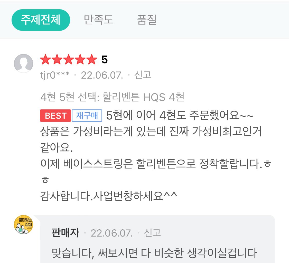 사용하신 베이시스트 분들의 리뷰를 보겠습니다